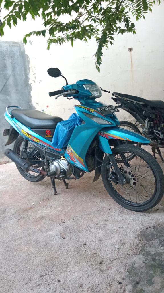 Sepeda motor miliknya dengan merk Yamaha Vega ZR BP 5349 JO warna biru langit, raib di gondol si pelaku curanmor/maling.