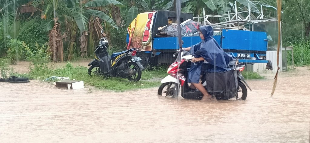 “Kalau setiap hujan, pasti disini banjir pak. Pokoknya langganan banjir disini,” kata seorang pemilik bengkel di Simpang Helm, Legenda, Minggu, 23/8/20.