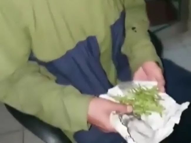 Dalam rekaman itu, pria tersebut memperlihatkan bungkusan koran yang berisi rumput bewarna hijau.