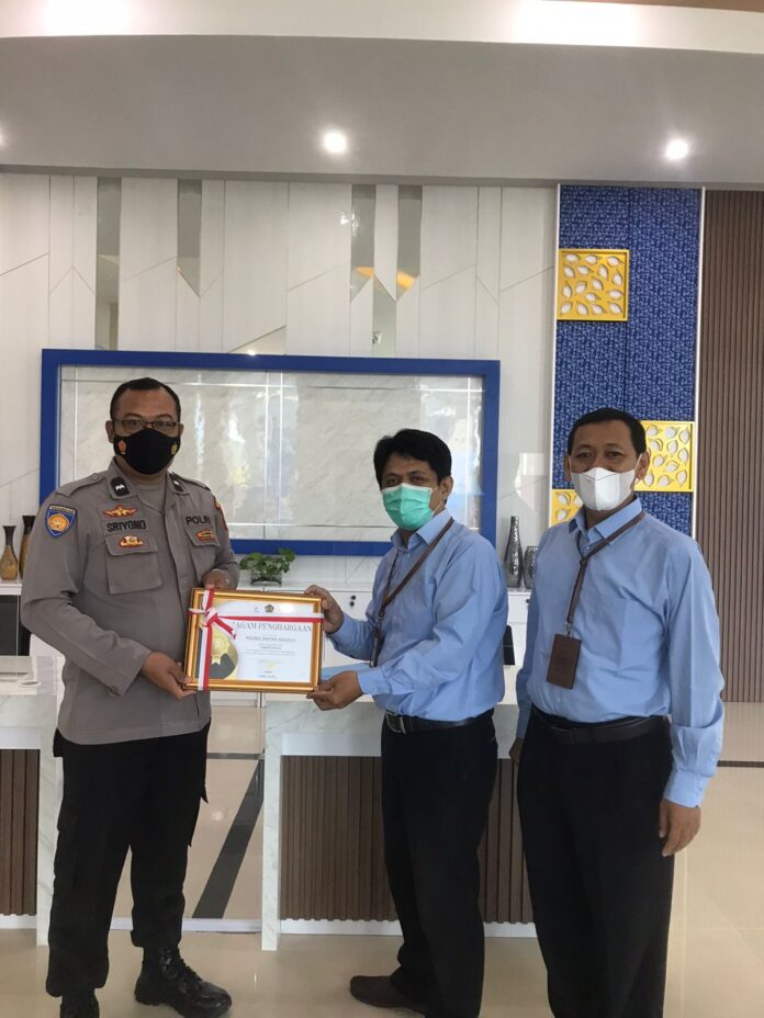 Penyerahan piagam tersebut diserahkan langsung oleh Kasubag Umum KPPN Tanjung Pinang Anjar kepada PS. Kasikeu Polres Bintan Aipda Sriyono disaksikan oleh Kasi MSKI KPPN Tanjung Pinang saudara Atep , pada hari Rabu (20/04/2022).