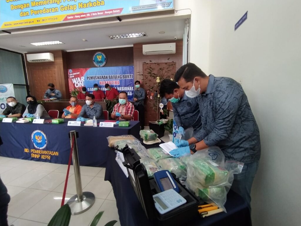 BNNP Kepri pada Selasa (31/5) melakukan pemusnahan dua hasil tangkapan tersebut. Untuk ganja sebanyak 783,49 gram dan disisihkan untuk uji laboratorium dan pembuktian perkara Ganja seberat 29,51 gram.
