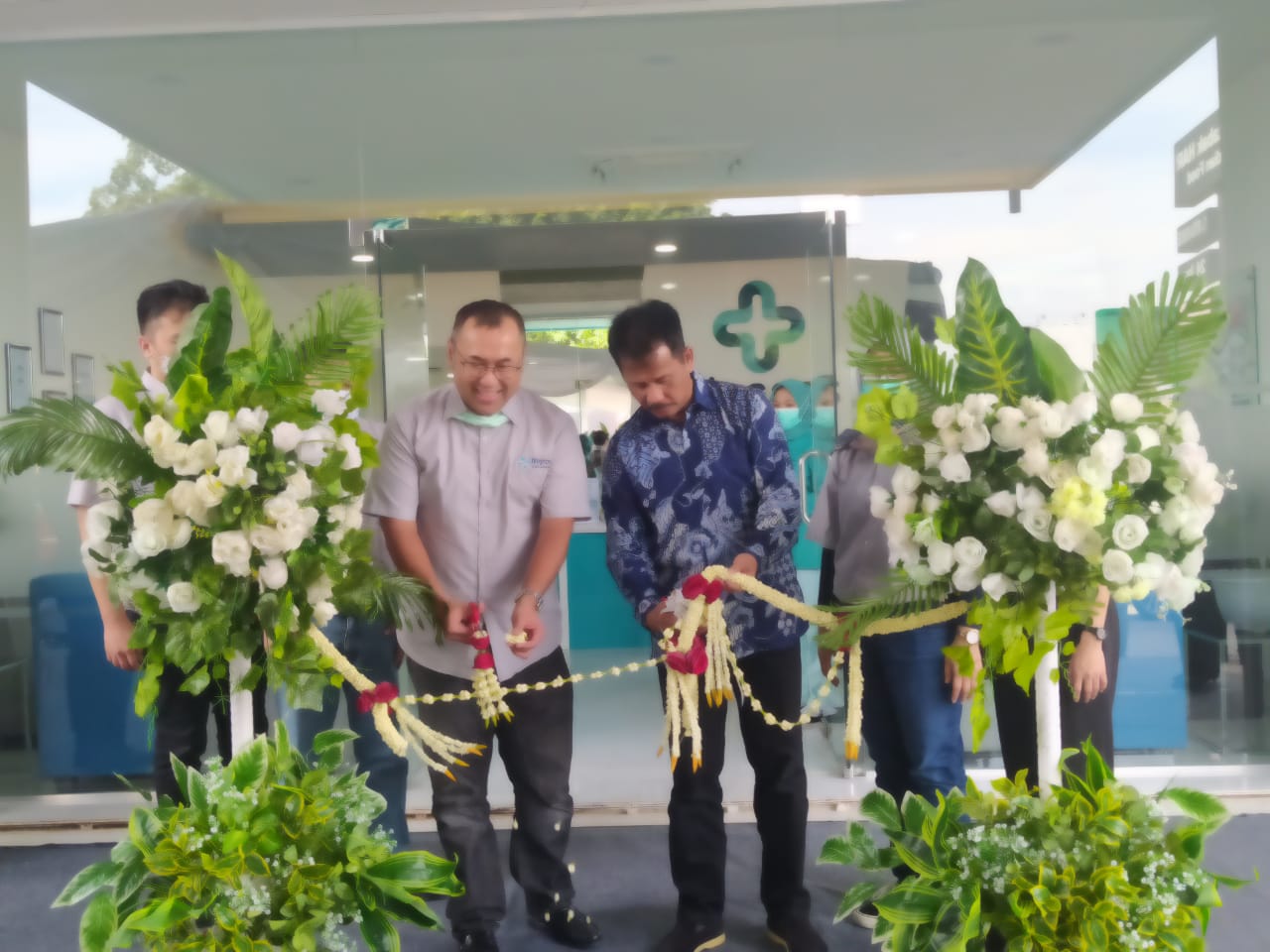 Kegiatan grand opening Diagnos Clinical Laboratory itu dilakukan dengan pemotongan tumpeng dan pemotongan pita yang menandai resmi beroperasi klinik tersebut. (Bob)