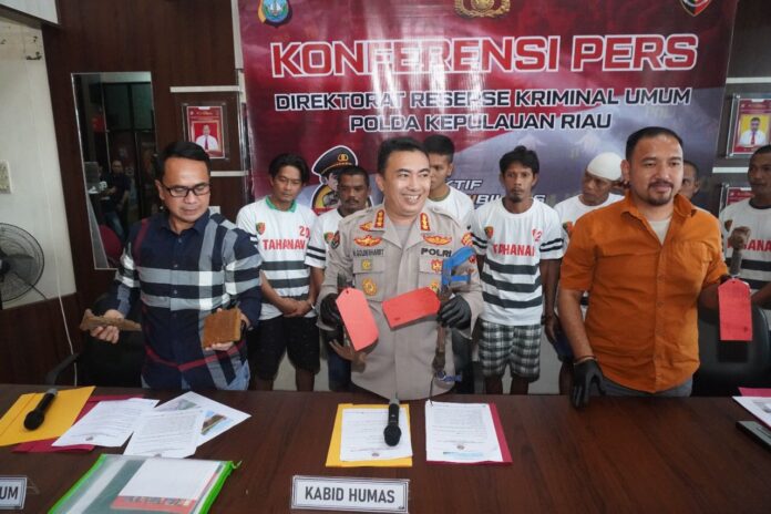 Dirreskrimum Polda Kepri Kombes Pol Jefri Ronal Parulian Siagian menjelaskan, para tersangka diamankan dalam kasus pencurian single bouy morring, sejenis alat untuk mengisi bahan bakar minyak ke kapal-kapal.