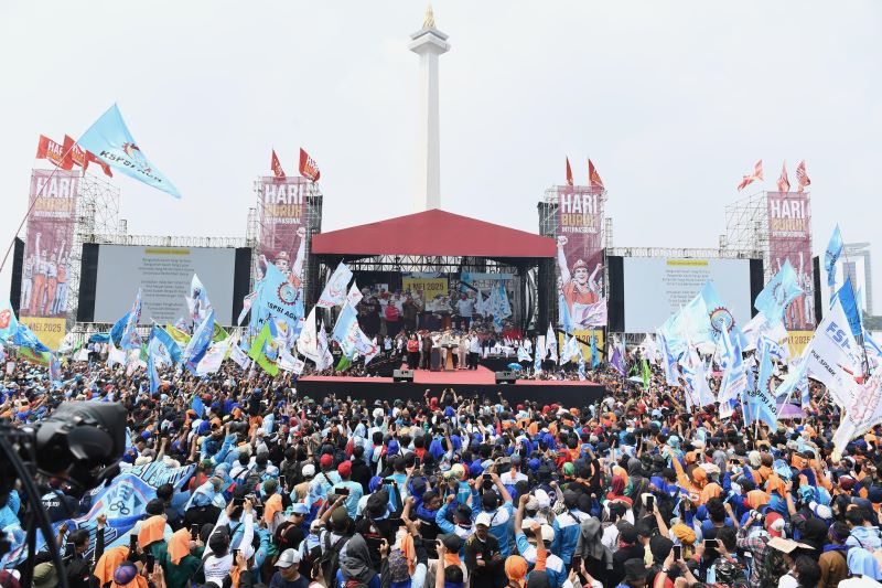 Di hadapan lebih dari 200 ribu buruh dari berbagai daerah, Prabowo menegaskan komitmennya dalam meningkatkan kesejahteraan pekerja dan memperbaiki sistem ketenagakerjaan nasional.