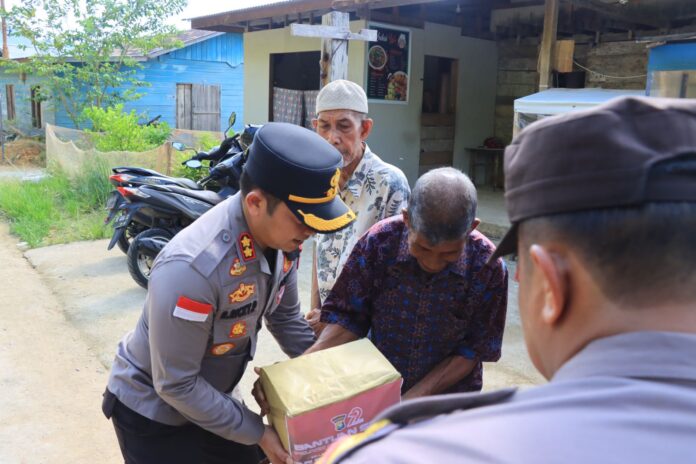 Kapolres kepulauan Anambas, AKBP Raden Ricky Pratidiningrat berikan bantuan sosial untuk masyarakat sempena Hari Bhayangkara ke-79. (Foto: AlurNews)