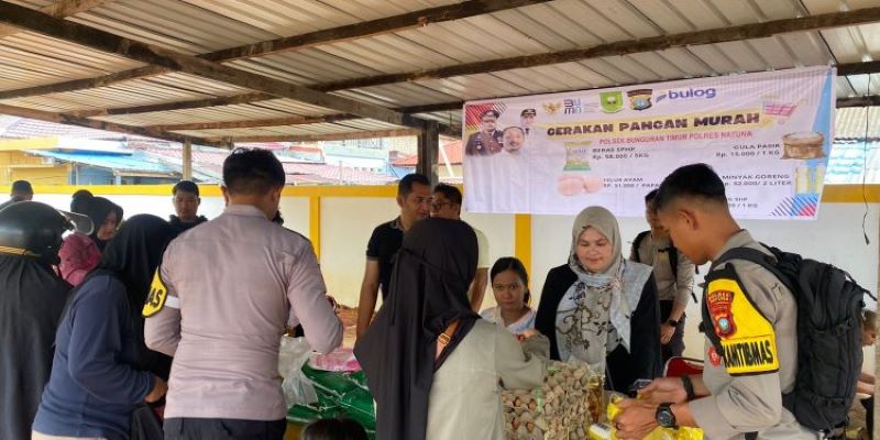 Kapolsek Bunguran Timur AKP Nellay Boy menjelaskan, pasar murah ini bertujuan membantu masyarakat memenuhi kebutuhan pokok sekaligus menjaga stabilitas harga.