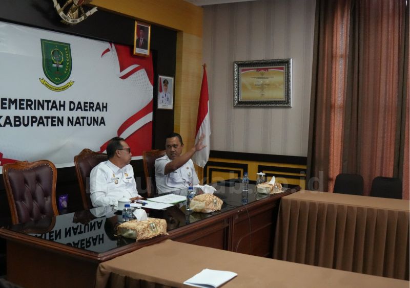 Dalam rapat tersebut, Wakil Bupati Natuna menyimak pemaparan Wakil Gubernur Kepulauan Riau Nyanyang Haris Pratamura yang menyoroti berbagai tantangan pengelolaan perbatasan di Kabupaten Natuna.